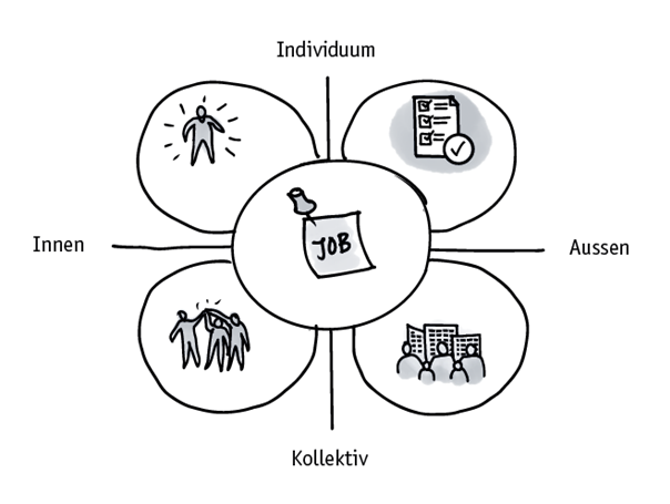 - Eine weitere Möglichkeit liegt darin, die eigene Wahrnehmung und Einstellung zur Arbeit zu verändern. Das bedeutet, den Sinn oder Wert der eigenen Tätigkeit anders zu interpretieren, was zu einer gesteigerten Zufriedenheit führen kann.